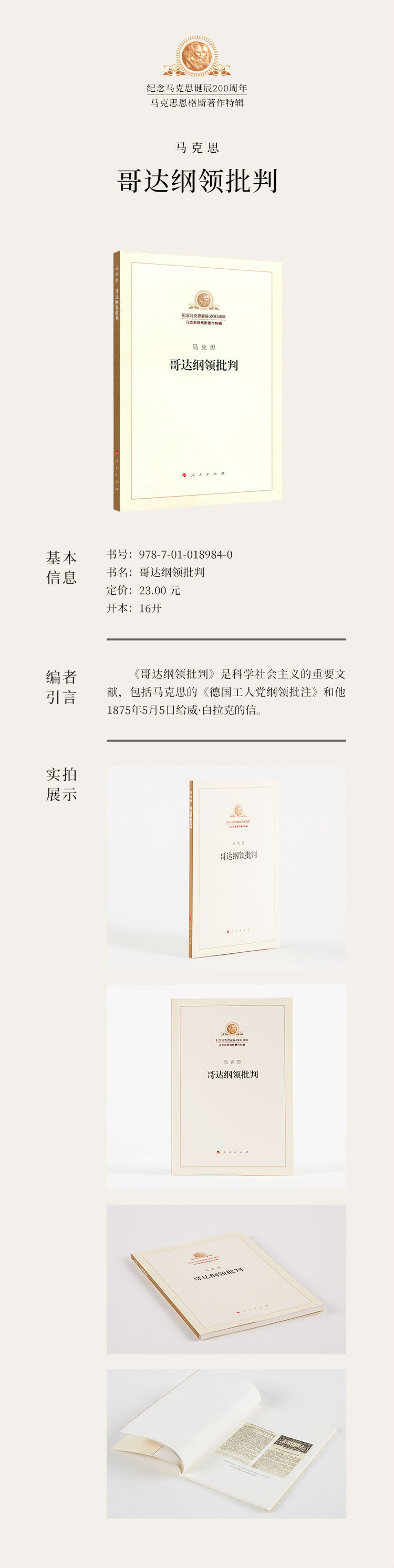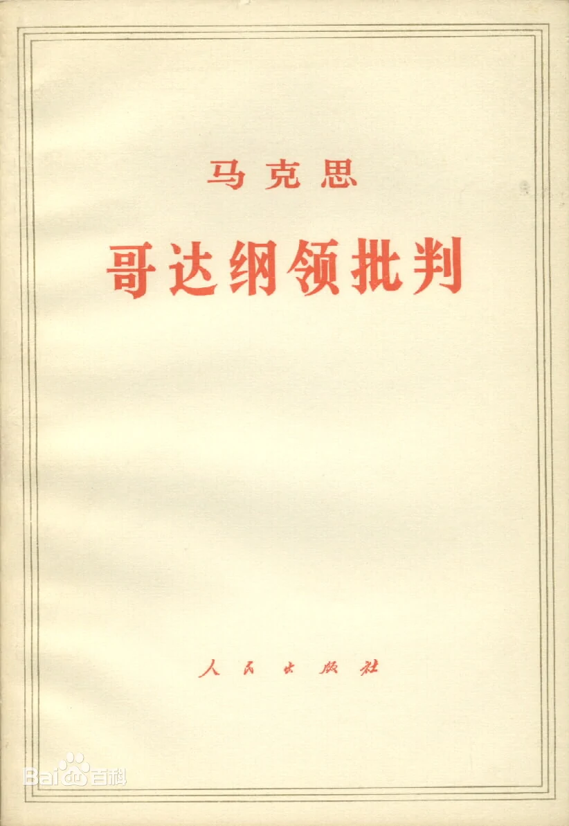 《哥达纲领批判》是德国思想家卡尔·马克思于1875年创作的政治著作,1891年首次发表于《新时代》。《哥达纲领批判》是科学共产主义的重要纲领性文献之一。它全面系统地批判了拉萨尔主义的错误理论,厘清了科学社会主义与非科学的社会主义思想理论的本质区别,进而对未来社会从制度、发展阶段以及分配等方面做了原则构想。