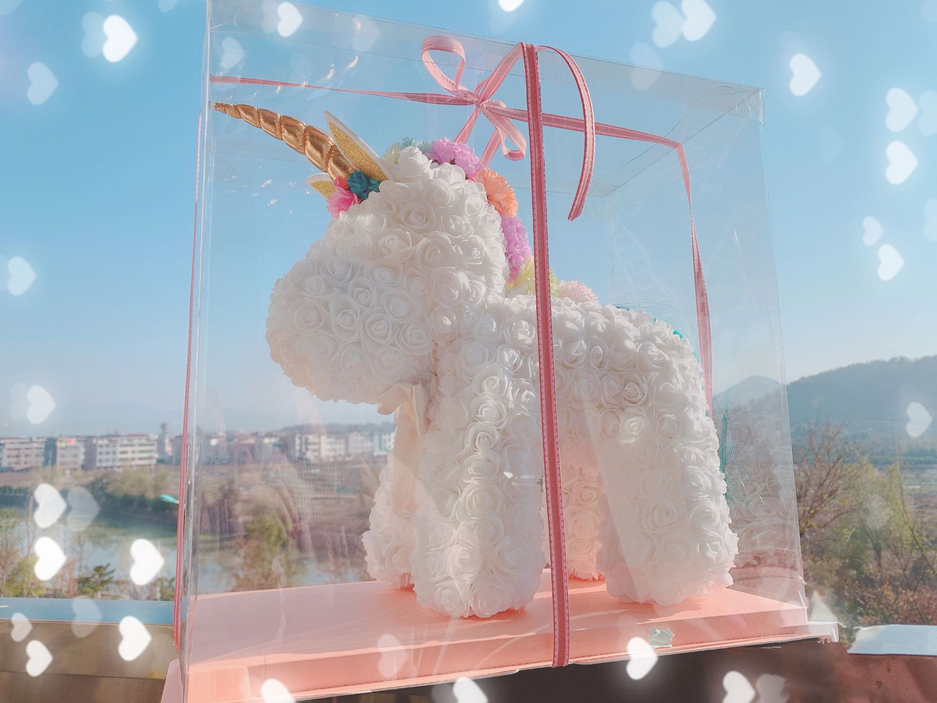 动漫周边 > 手办(玩具) > 永生花独角兽玫瑰狗礼盒情人节毕业礼物生日女友闺蜜熊透明包装盒