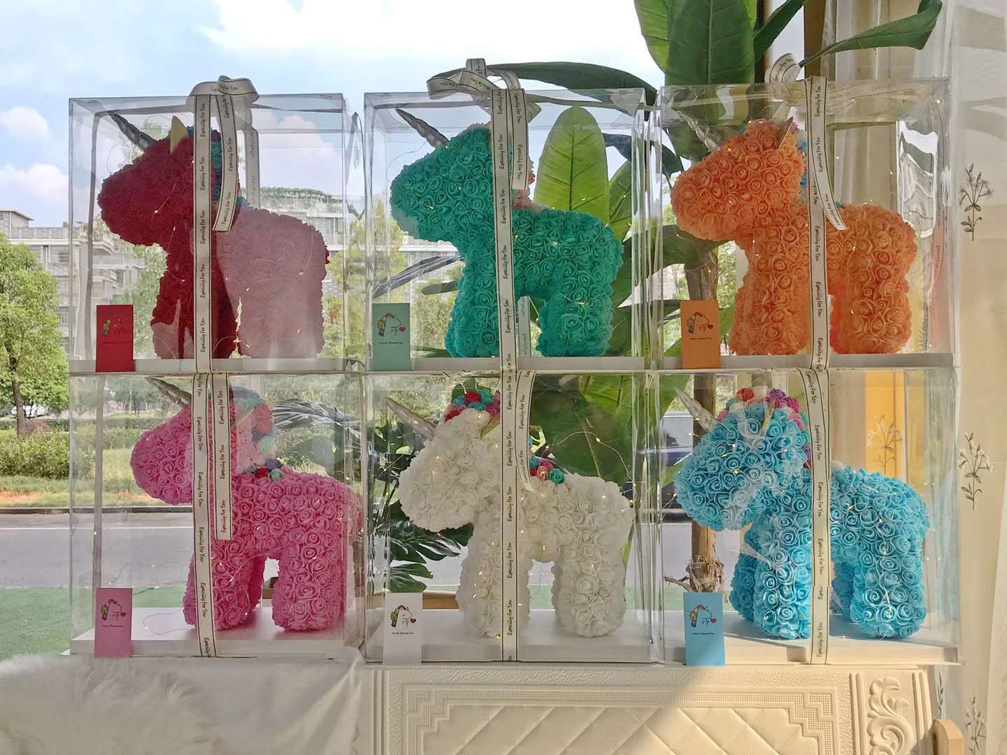 永生花独角兽玫瑰狗礼盒情人节毕业礼物生日女友闺蜜熊透明包装盒