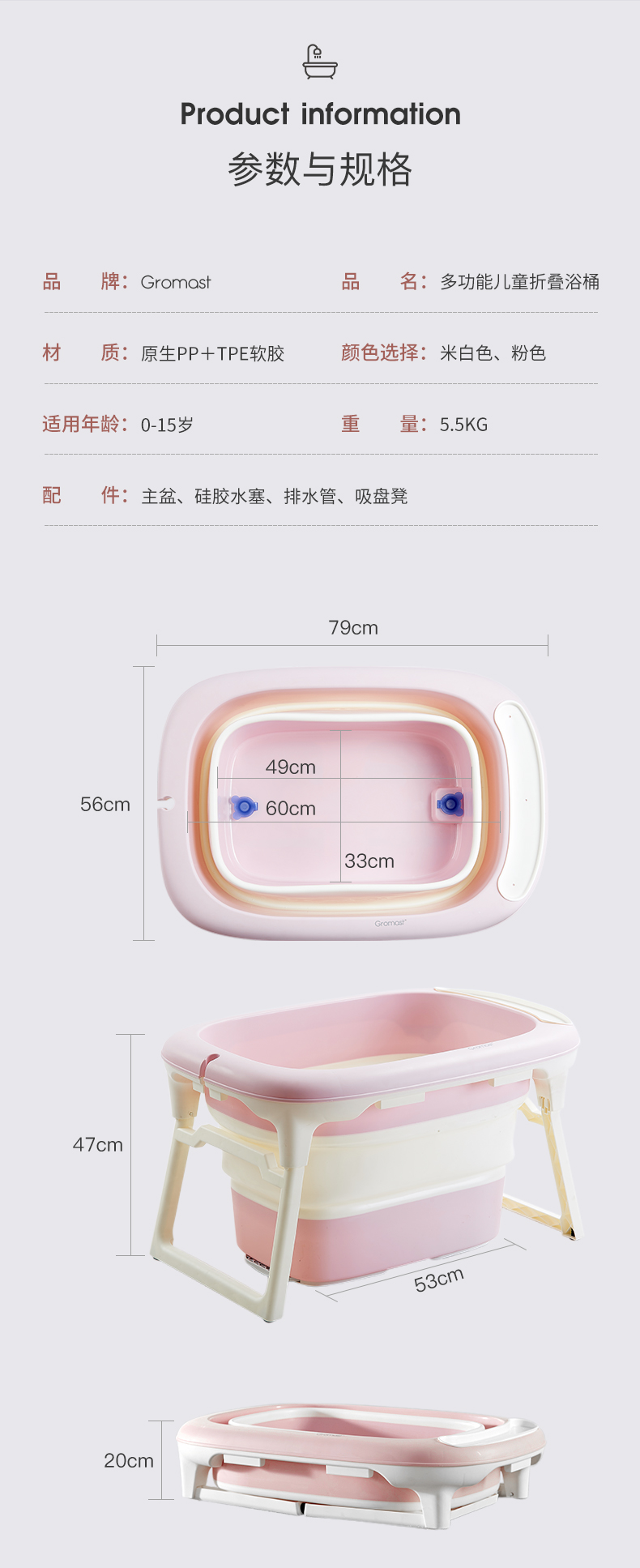 • 商品名称:Gromast婴儿洗澡盆宝宝折叠...
