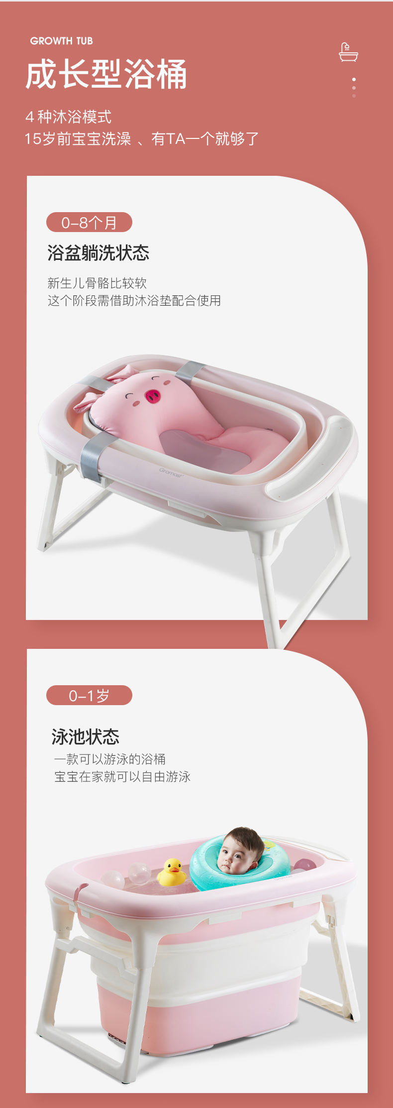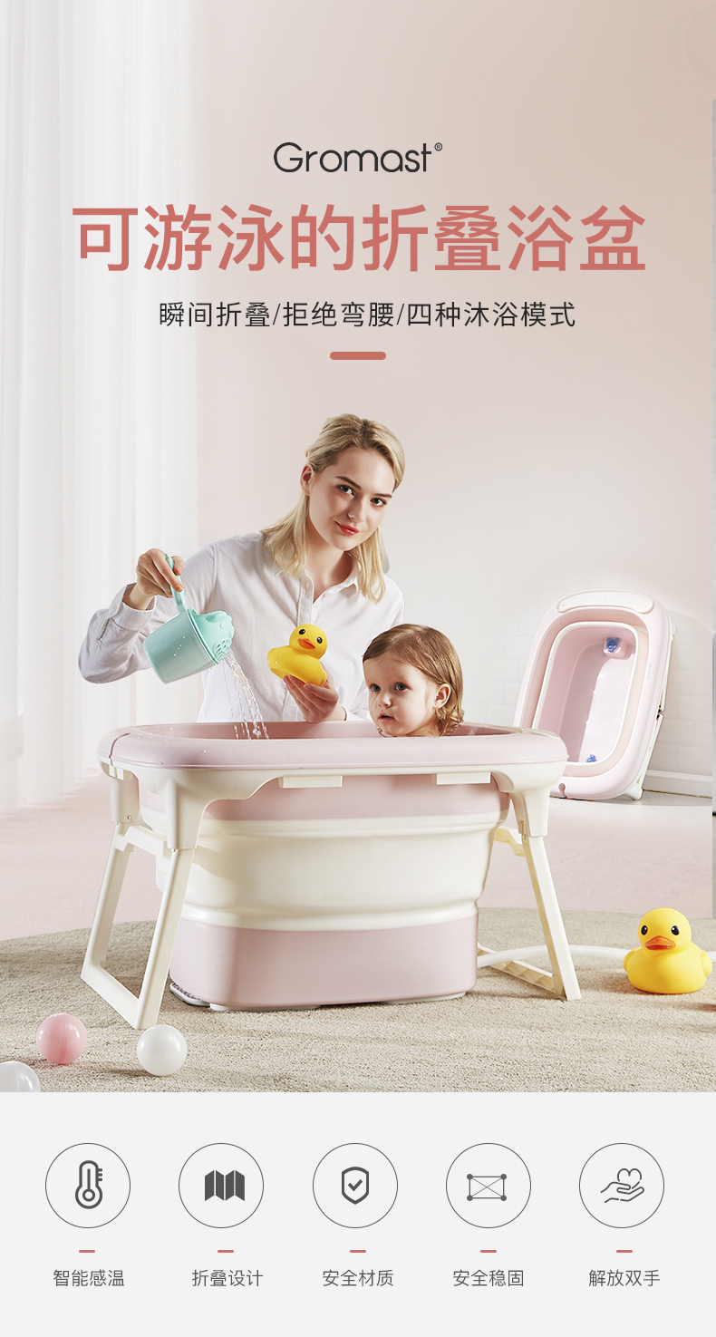 动漫周边 > 其它 > Gromast婴儿洗澡盆宝宝折叠浴盆新生儿可坐躺儿童沐浴桶家用大号