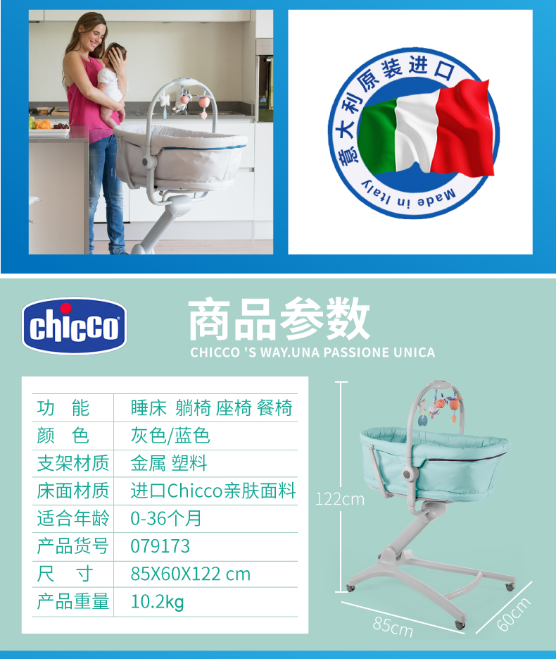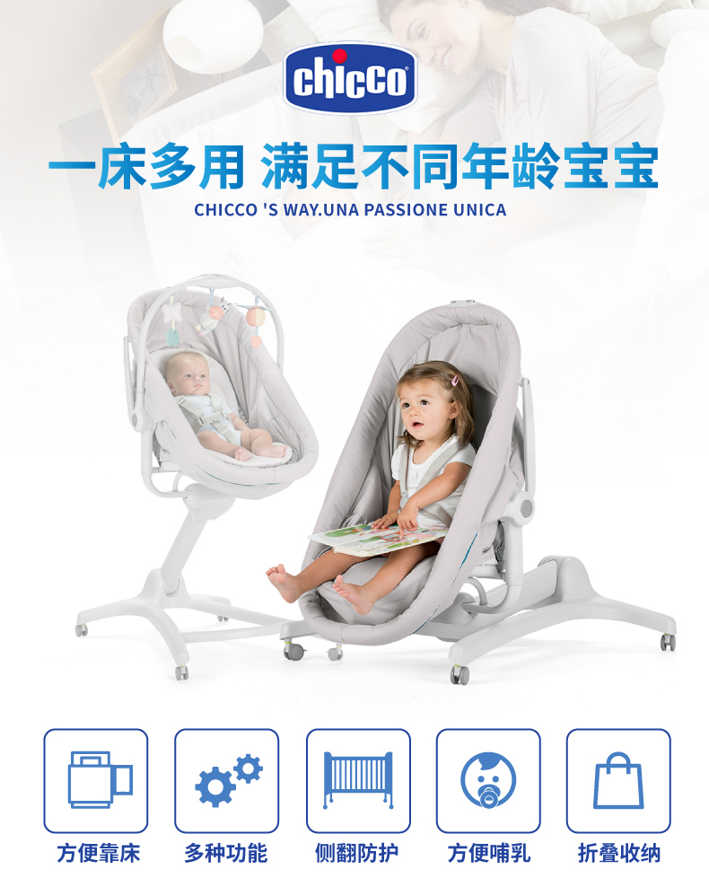 意大利chicco智高多功能新生婴儿床可移动折叠便携式宝宝摇篮睡床