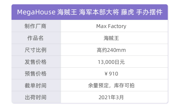 动漫周边 > 手办(玩具) > 预定 MegaHouse 海贼王 海军本部大将 藤虎 手办摆件