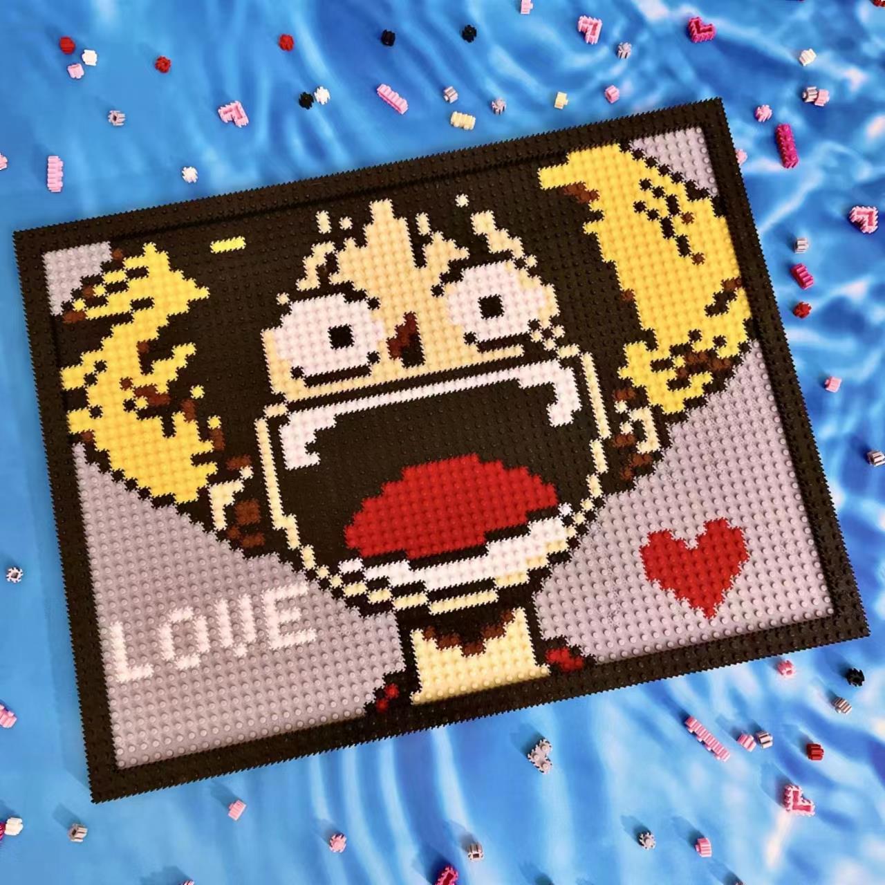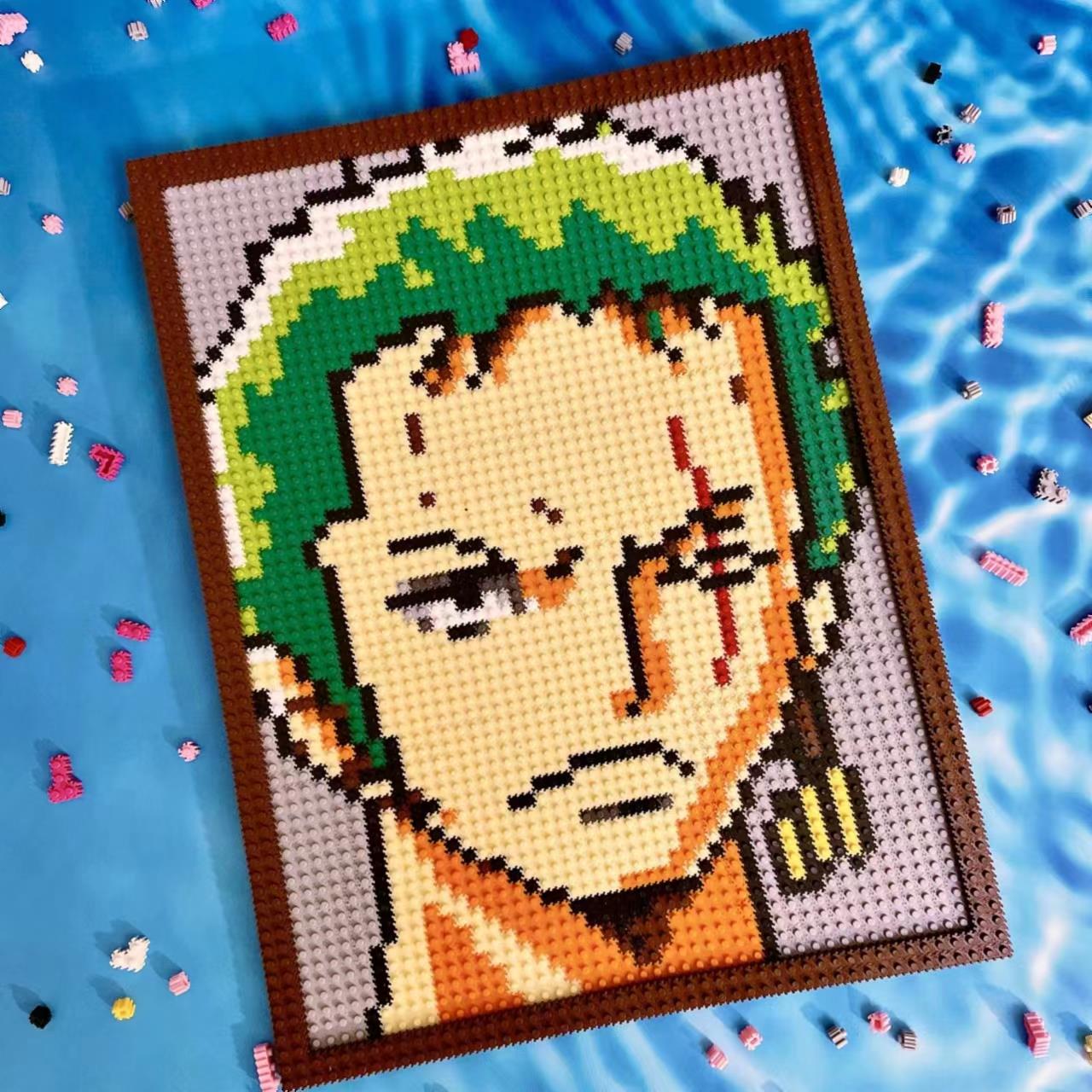 蒙奇D路飞兼容乐高路飞积木壁画小颗粒拼装拼图平面装饰画