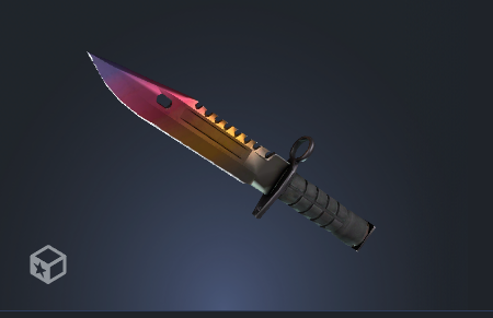 这是 M-9 刺刀。起初是装在步枪上面的,其同时还非常适合近距离作战。 这把武器以铬为外表,使用喷笔涂上了相互渐变的透明涂装。 这不仅仅是一把武器,更是一种潮流 - 实习军火商伊莫金