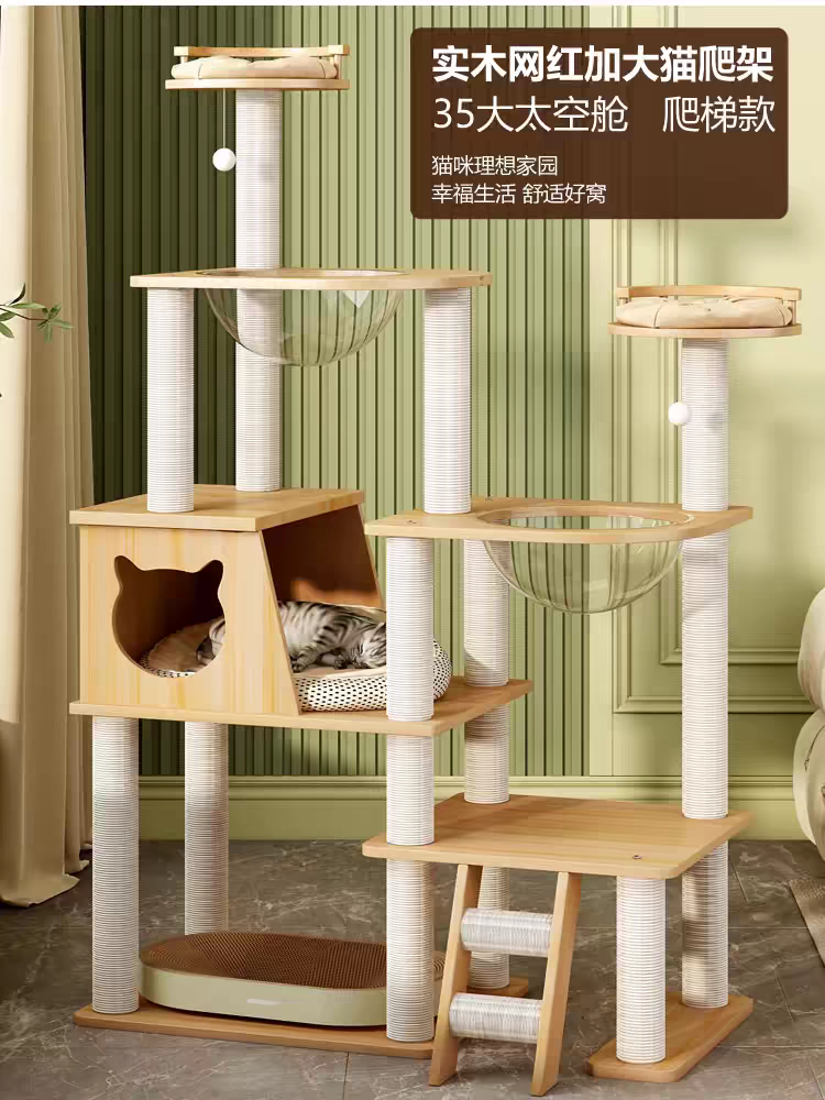 实木猫爬架猫窝猫树一体猫抓柱大型通天柱加大太空舱,环保实木板材,多猫共享,不必争抢。
