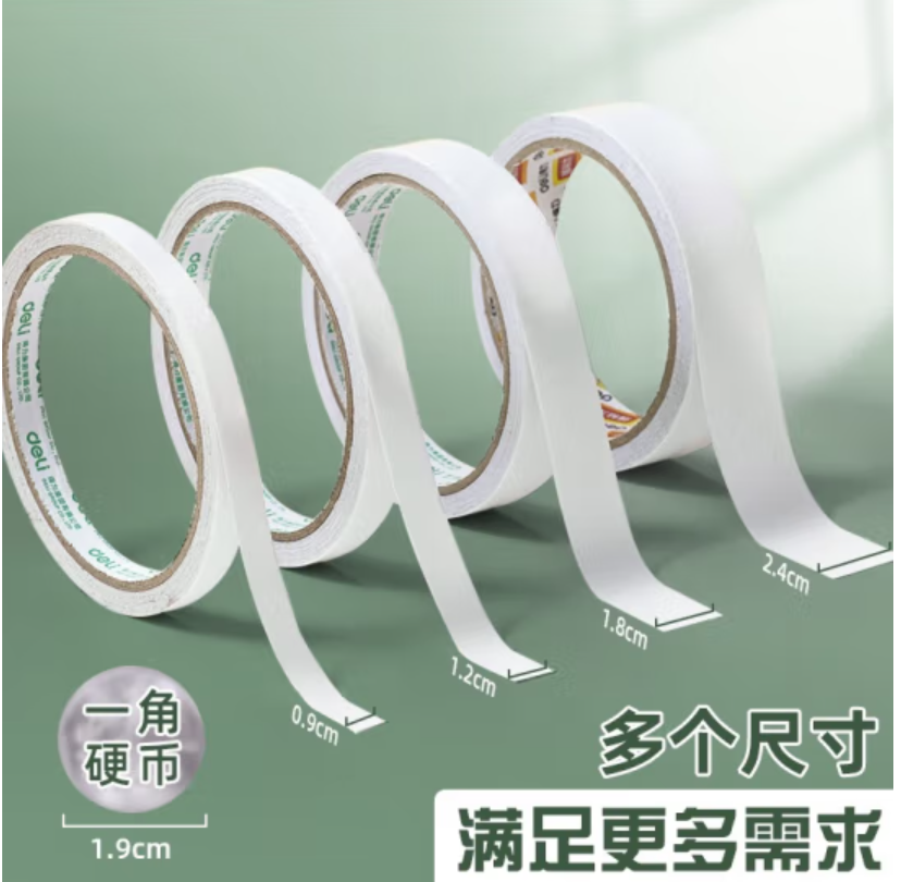 - **宽度与长度**:得力胶带提供多种宽度和长度选择,适合不同的使用需求,从家庭日常到办公需求都有合适的产品。
