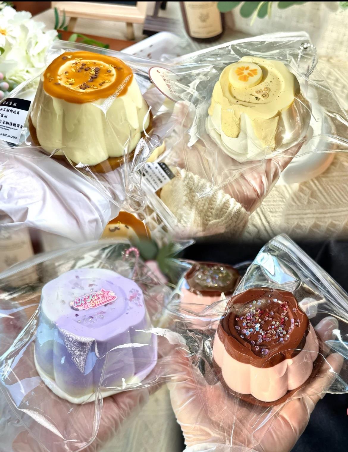 做了布丁才知道布丁为什么!胖乎乎的大布丁,有桂花烤奶,淤泥奶酪,熔岩巧克力款哒,撒了桂花和咖啡碎碎。