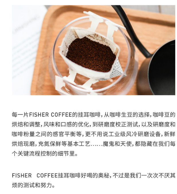 零食特产、酒水饮料 > 咖啡 > FISHER意式特浓美式精品挂耳咖啡20包新鲜现磨黑咖啡粉滤挂式耳挂