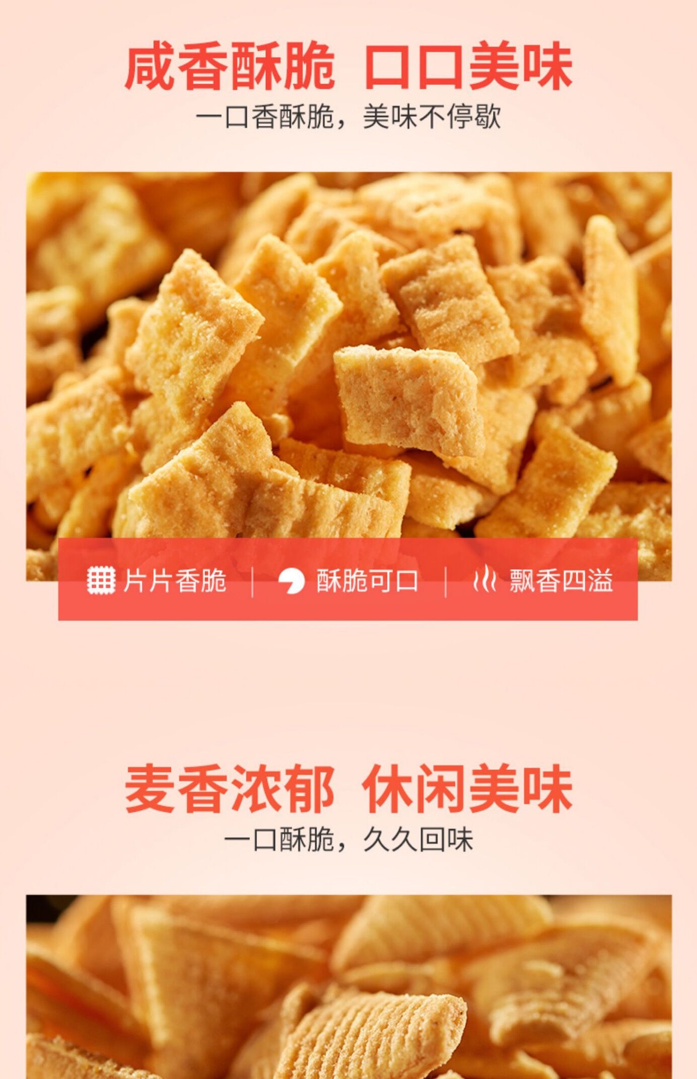 传统秘制配调;经历12道工序,咸香酥脆,麦香浓郁,消费者体验感极佳,一口一脆,久久回味。