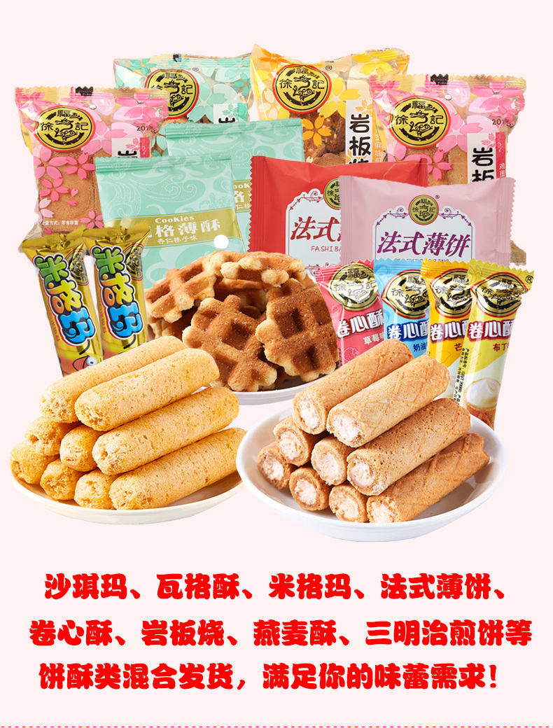 徐福记米格玛岩板烧500g多口味薄脆饼干散装零食糕点混合装大礼包 至少三种徐福记产品混合搭配,满足你的味蕾