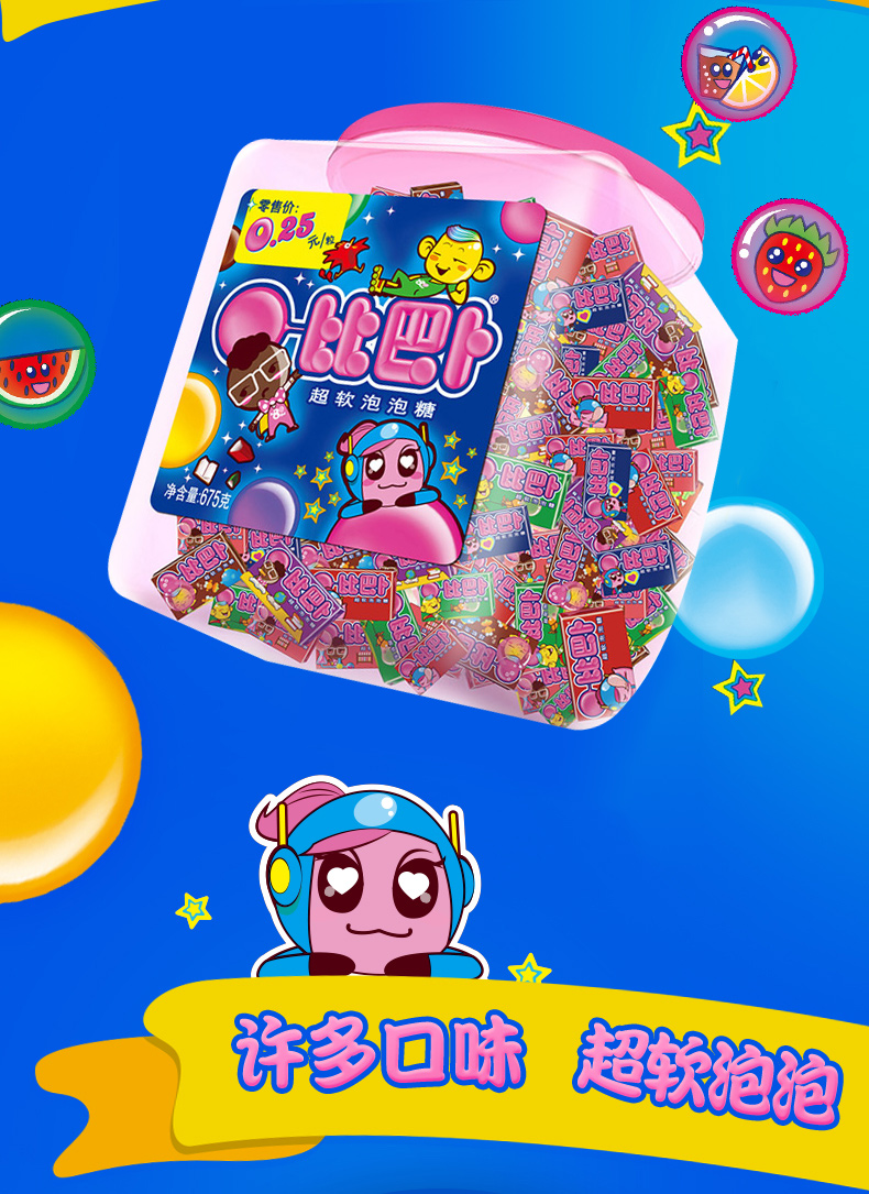 零食特产、酒水饮料 > 糖果 > 比巴卜泡泡糖西瓜味儿童80后怀旧童年礼盒装桶装糖果多口味口香糖