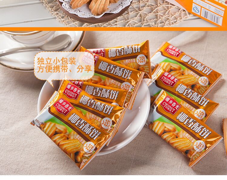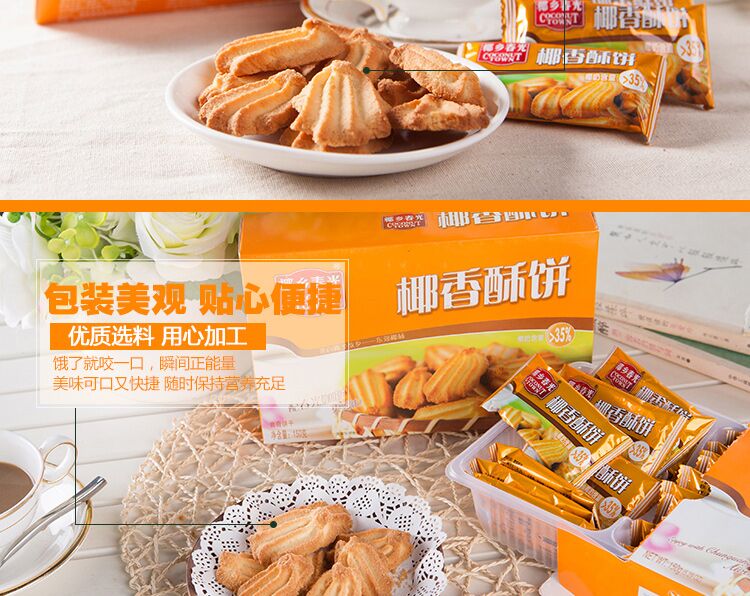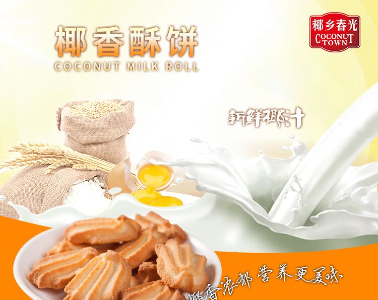 低甜可口,久吃不腻优质椰子汁为原料,海南上等椰子压榨的椰子汁制作的植物奶饼干营养美味