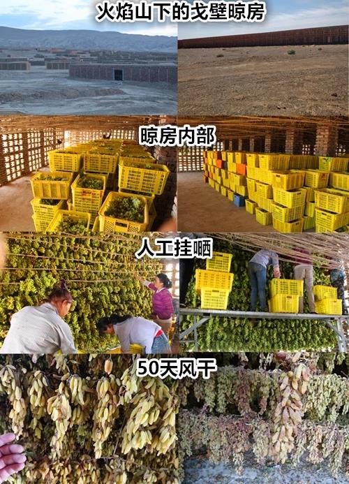 新疆吐鲁番是中国葡萄的重要生产基地。新疆葡萄甲天下,尤其以吐鲁番的葡萄最富盛名。吐鲁番盆地因地势低洼、高温少雨、日照充足,高低温差大等得天独厚的自然条件,使这里盛产葡萄。同时造就了葡萄干的非凡品质。在日光下晒干的葡萄干容易发酸,质量最好的是阴干。中国新疆吐鲁番的无核葡萄制成的葡萄干最有名,吐鲁番气候炎热而干燥,用砖搭成的阴干房四面墙上有许多墙洞,中间是木棍搭成的支架,将成熟的无核葡萄搭上,经过热风的吹,很快就能得到高质量的葡萄干。