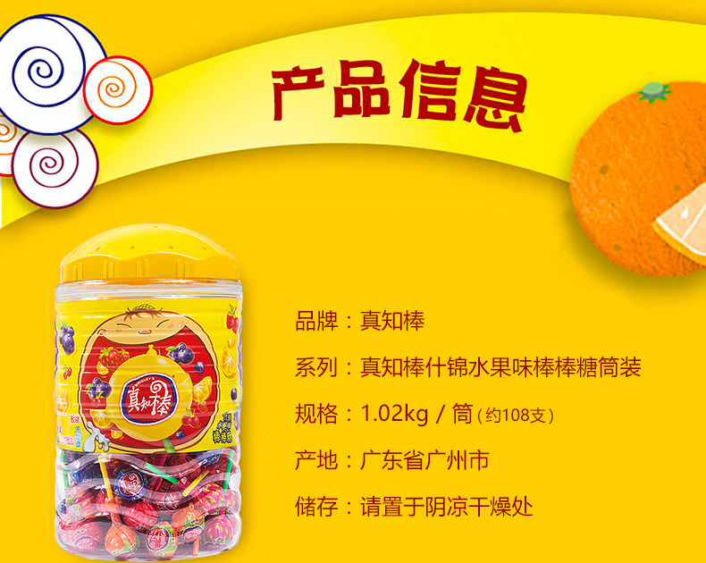 • 商品名称:真知棒棒棒糖108支大桶混装...