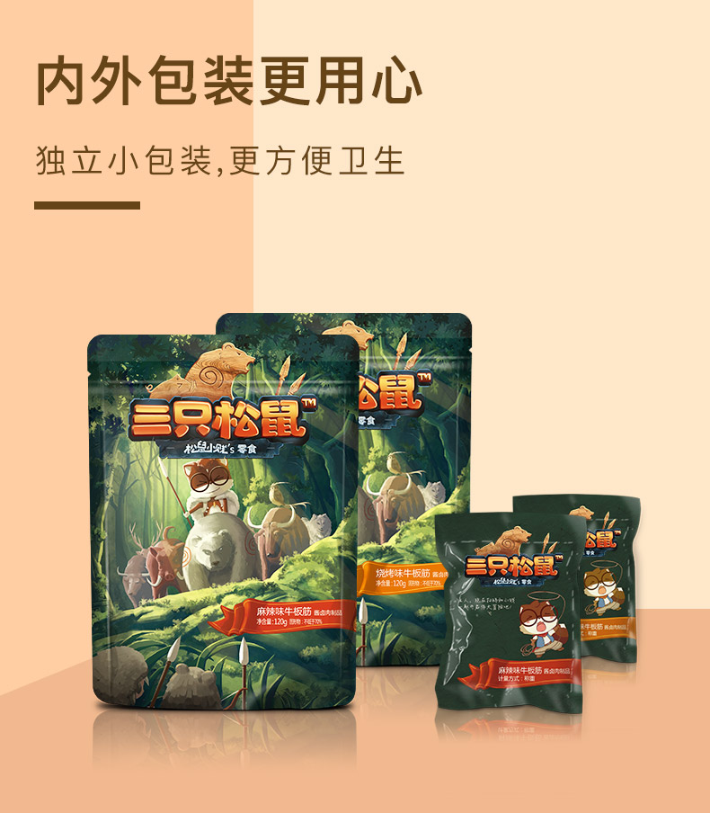 零食特产、酒水饮料 > 熟食 > 三只松鼠牛板筋120g零食小吃牛肉干特产麻辣小包装四川特产小吃