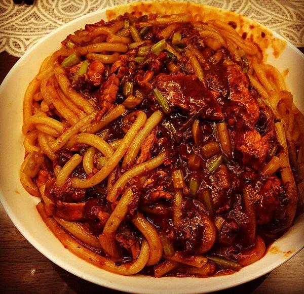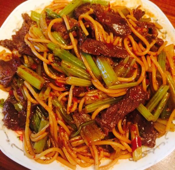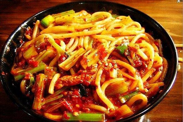 新疆炒米粉是一道新疆本地名小吃。炒米粉使用的米粉比较粗有嚼劲,味道香辣,汤汁颜色浓郁。而且花样很多,有鸡肉炒米粉、牛肉炒米粉、蘑菇炒米粉、火腿炒米粉、素炒米粉等。