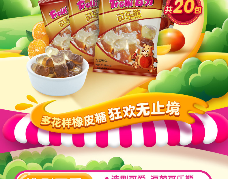 零食特产、酒水饮料 > 糖果 > 德国进口Trolli口力果汁糖可乐熊造型糖