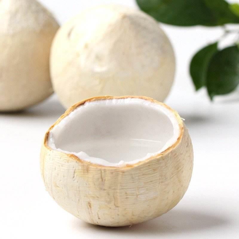 椰皇又名椰王,果形较为小巧,果壳坚硬厚实,呈淡咖啡色。椰皇内存有椰汁,清澈透白,甘甜爽口,味道比较清淡,是夏日里清凉解渴之佳品;紧贴果壳内壁还有一层厚厚的乳白色的椰肉,柔若奶油,芳香滑嫩,取出即可直接品尝。