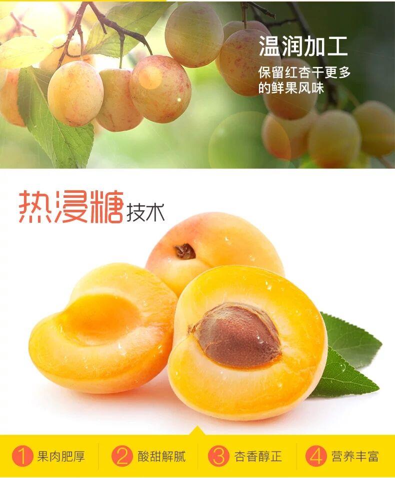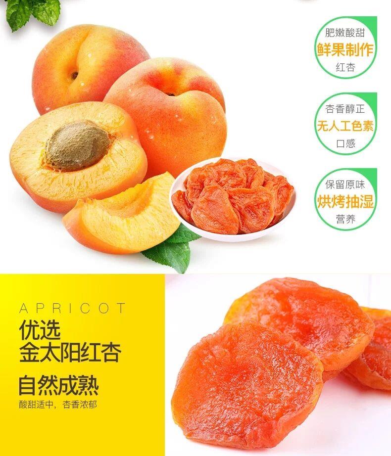 肥嫩酸甜鲜果制作,杏香纯正无人工色素,保留原为烘烤抽湿采用热浸甜技术,营养丰富