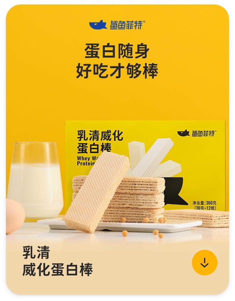 零食特产、酒水饮料 > 饼干 > 特价促销鲨鱼菲特乳清威化蛋白棒360g办公宿舍休闲零食