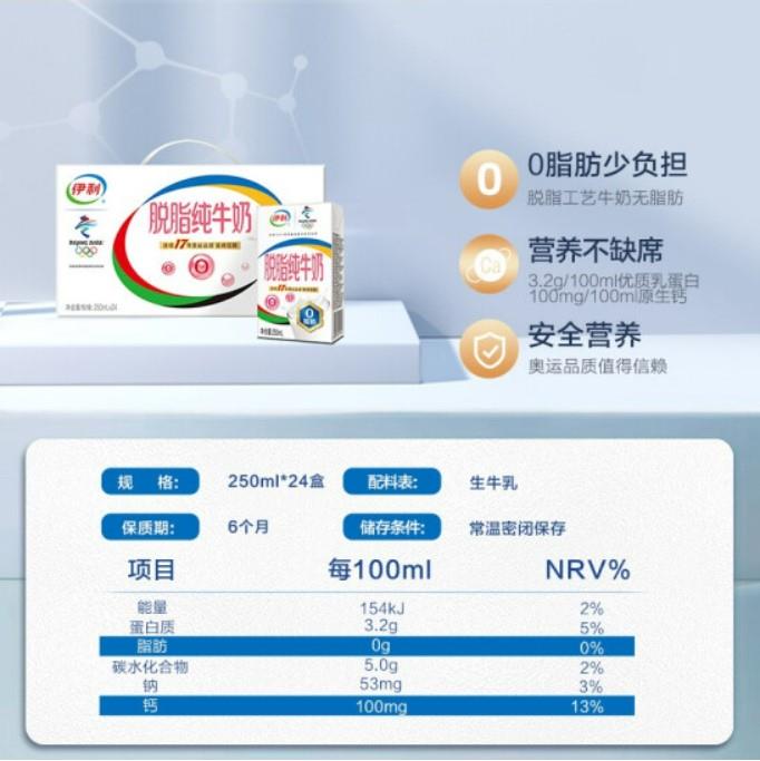 伊利脱脂奶让你安心补充营养,不必担心发胖。
