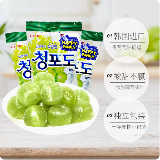 口味:乐天青葡萄硬糖153g*2