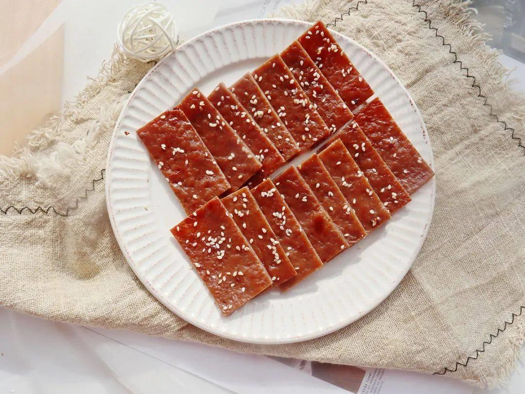 肉脯是一种传统的中国风味零食,是将猪肉切成薄片后用特殊的配料和调料进行腌制和烤制而成的。
