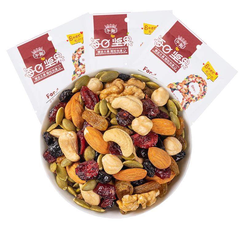 每日坚果因其科学配比的概念,符合中国人膳食结构,从而成为了一种全球风尚的休闲食品。果仁清脆香浓,果干酸甜爽口,是工作、休闲、学习、运动时的营养美味伴侣。它可以搭配早餐、下午茶、糕点、酸奶等食用,老少皆宜。