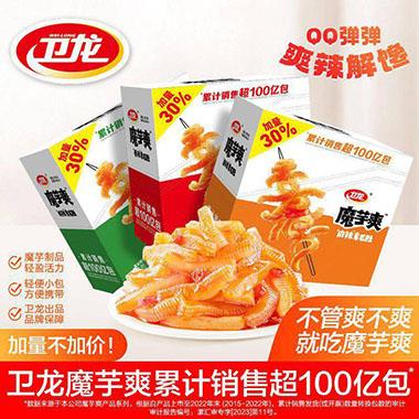 魔芋具有低热量、低脂、高纤维素、无胆固醇的特点,卫龙魔芋爽是魔芋经加工制成的食品,拥有这种原料自带buff,所以受众更广,减脂人群也能毫无负担地吃。同时,卫龙将品牌的“辣味”属性和魔芋相融合,让这款魔芋爽既有独特的麻辣口味,又有爽滑Q弹的口感,味道也是“凌驾”在很多零食之上。不管从哪个层面来看,卫龙魔芋爽都是零食界的天菜。更重要的是,魔芋爽还有卫龙这个品牌的加持,卫龙的品牌力来自优质产品的积累,反过来卫龙产品又得到了其品牌形象的利好。当然,这个良性闭环总是有一个开始的,而这个开始就是卫龙创立以来就坚持的初心:品质为先。从原料到工艺,从研发到生产,无一不体现卫龙对品质的追求。北纬黄金小麦区的面粉、云南高原产区的魔芋、一级大豆油、甘肃武都花椒、新疆孜然等精选原料;不添加反式脂肪酸、甜蜜素等添加剂的生产标准;非油炸式自研挤压熟制的工艺;数字化监控系统、RGV小车、自动理料机、一片式包装机、自动码垛机等智能设备。卫龙产品是它们的集成体,所以在这样的高标准下生产的卫龙魔芋爽自带“品质”标签。拥有放心品质、低脂特点、独特美味的卫龙魔芋爽,可不就是辣味休闲零食界的天花板?
