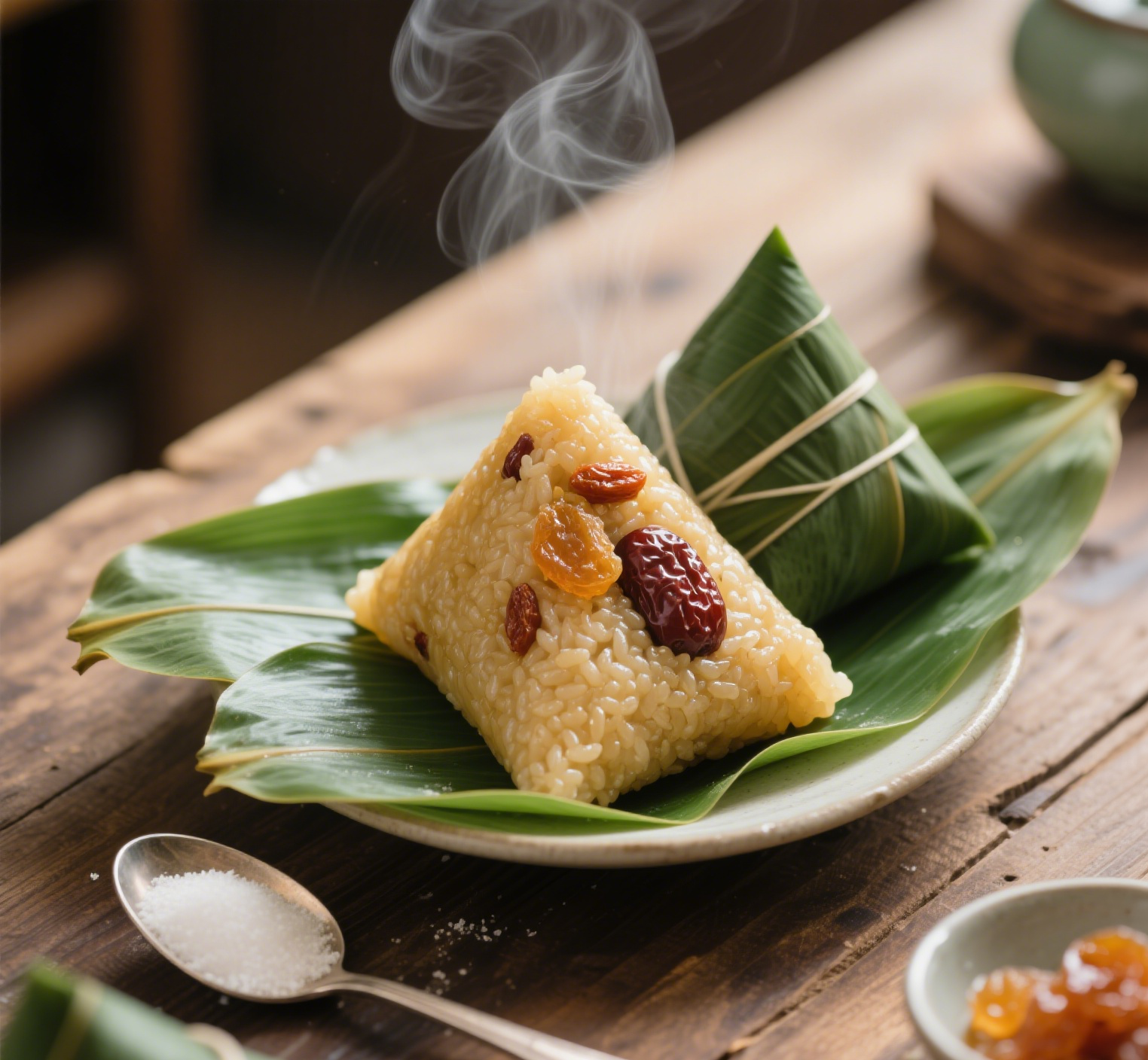 剥开翠绿的粽叶,金黄油亮的甜粽展露眼前,热气裹挟着粽香、枣香、豆香扑面而来。咬上一口,甜蜜滋味在舌尖散开,软糯的米香与醇厚的甜香交织,仿佛将端午的美好与传统的温情一同品尝。无论是清晨配一杯清茶,还是午后作为解馋小点,都是味蕾与心灵的双重满足,带你重温记忆中最纯粹的甜蜜端午。