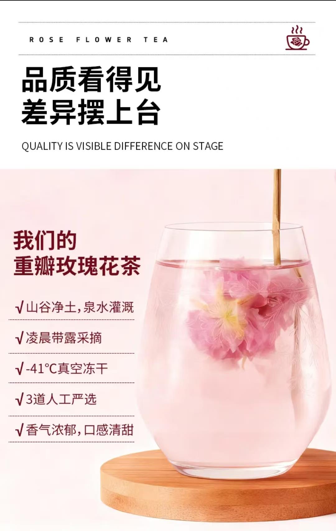 平阴无硫玫瑰花瓣茶100g罐装,头茬原料,低温锁香,泡水养生超合适~