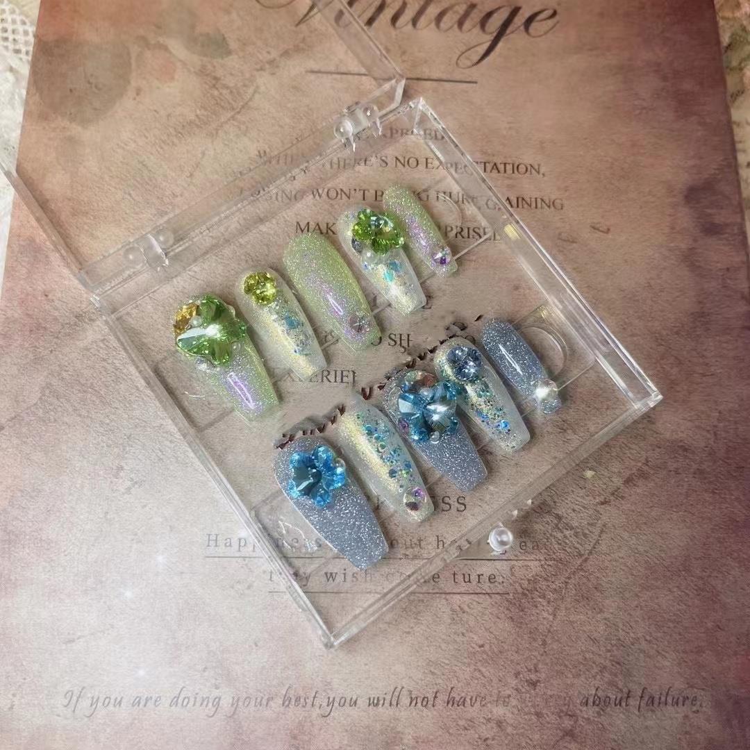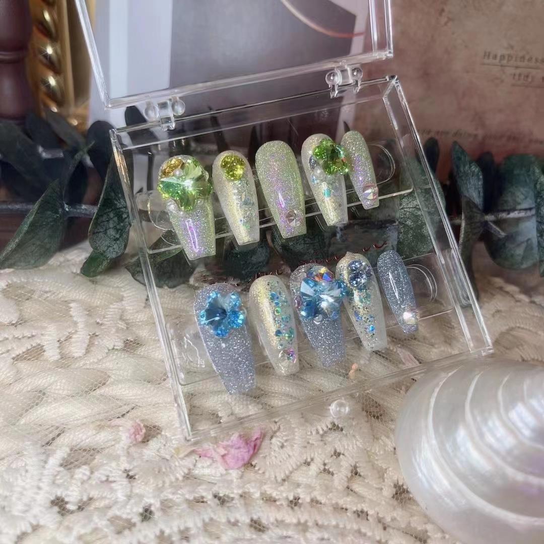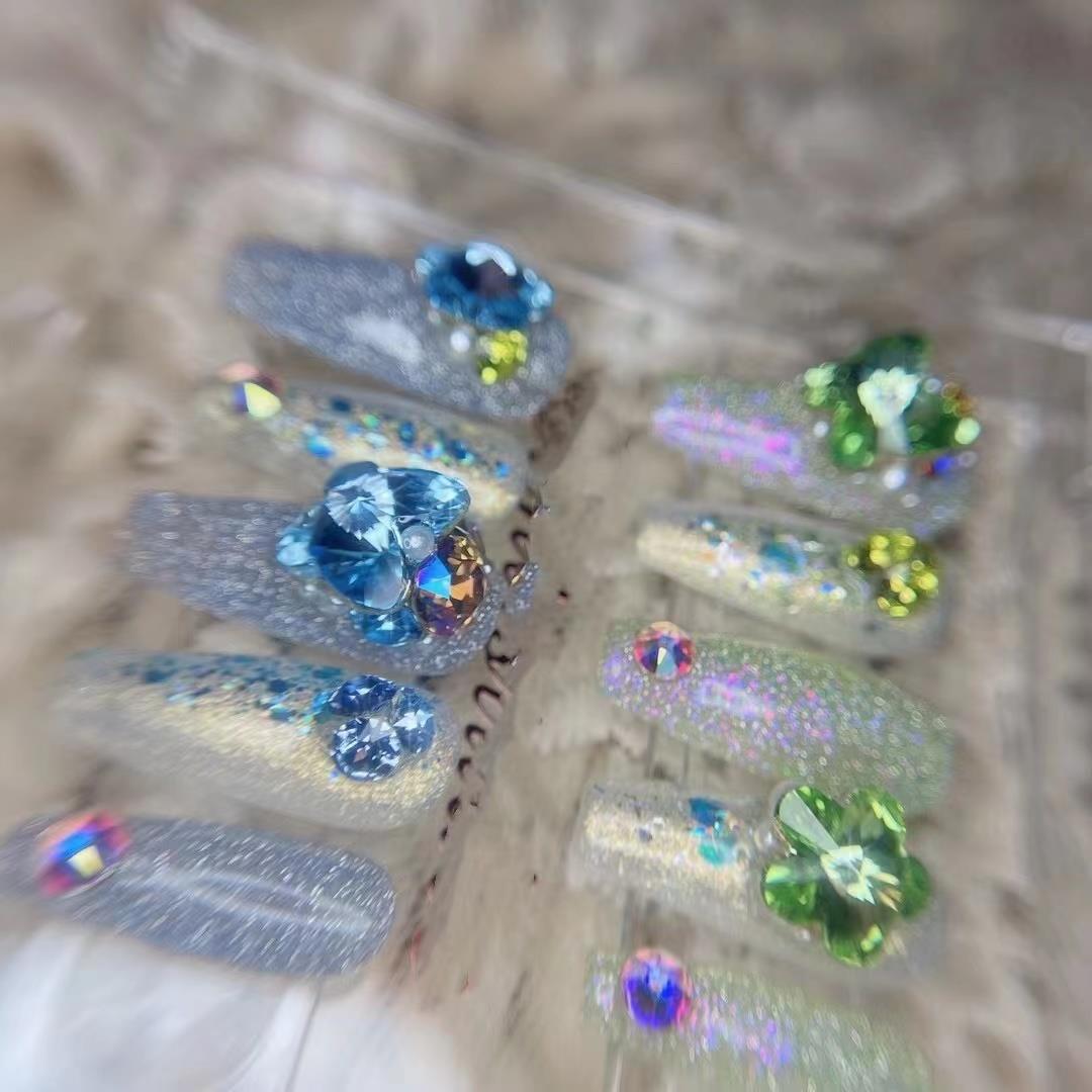 个人化妆、洗发沐浴 > 外貌 > 【冰studio】鸳鸯蓝绿施华洛钻美甲 定制穿戴甲