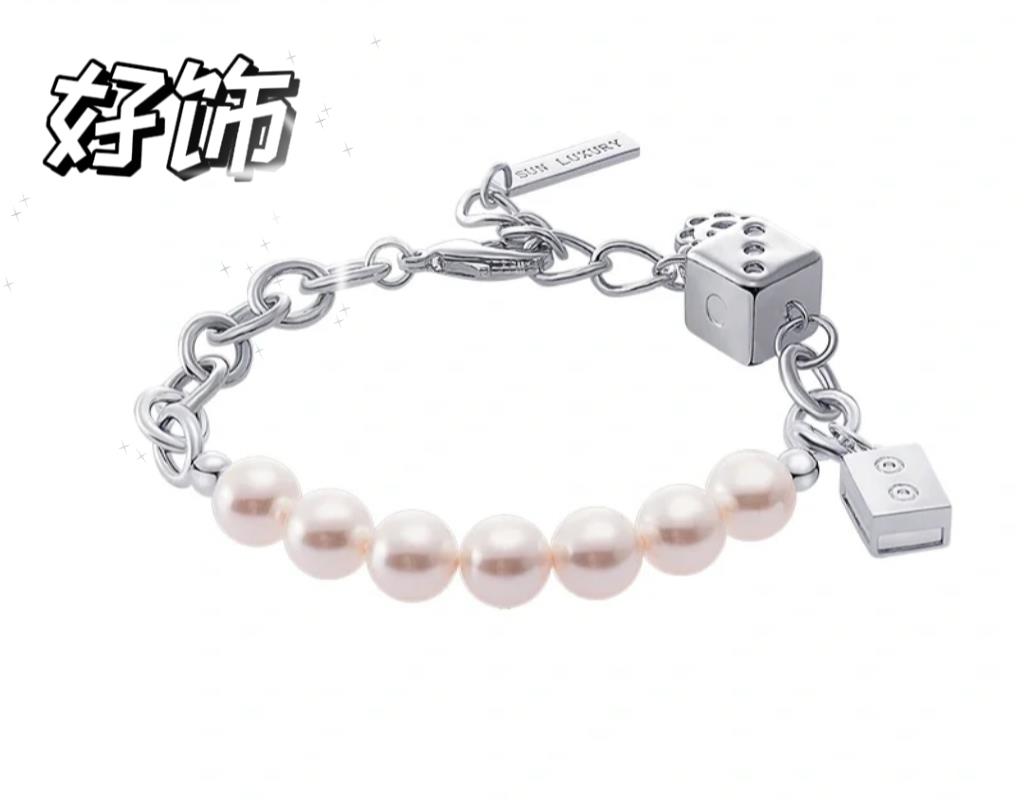 珍珠直径约0.8厘米,链长约17+5㎝延长。轻奢质感,金属链与珍珠碰撞,多重元素拼接,串联多种元素趣味配件。人性化延长链设计,佩戴更加方便灵活。