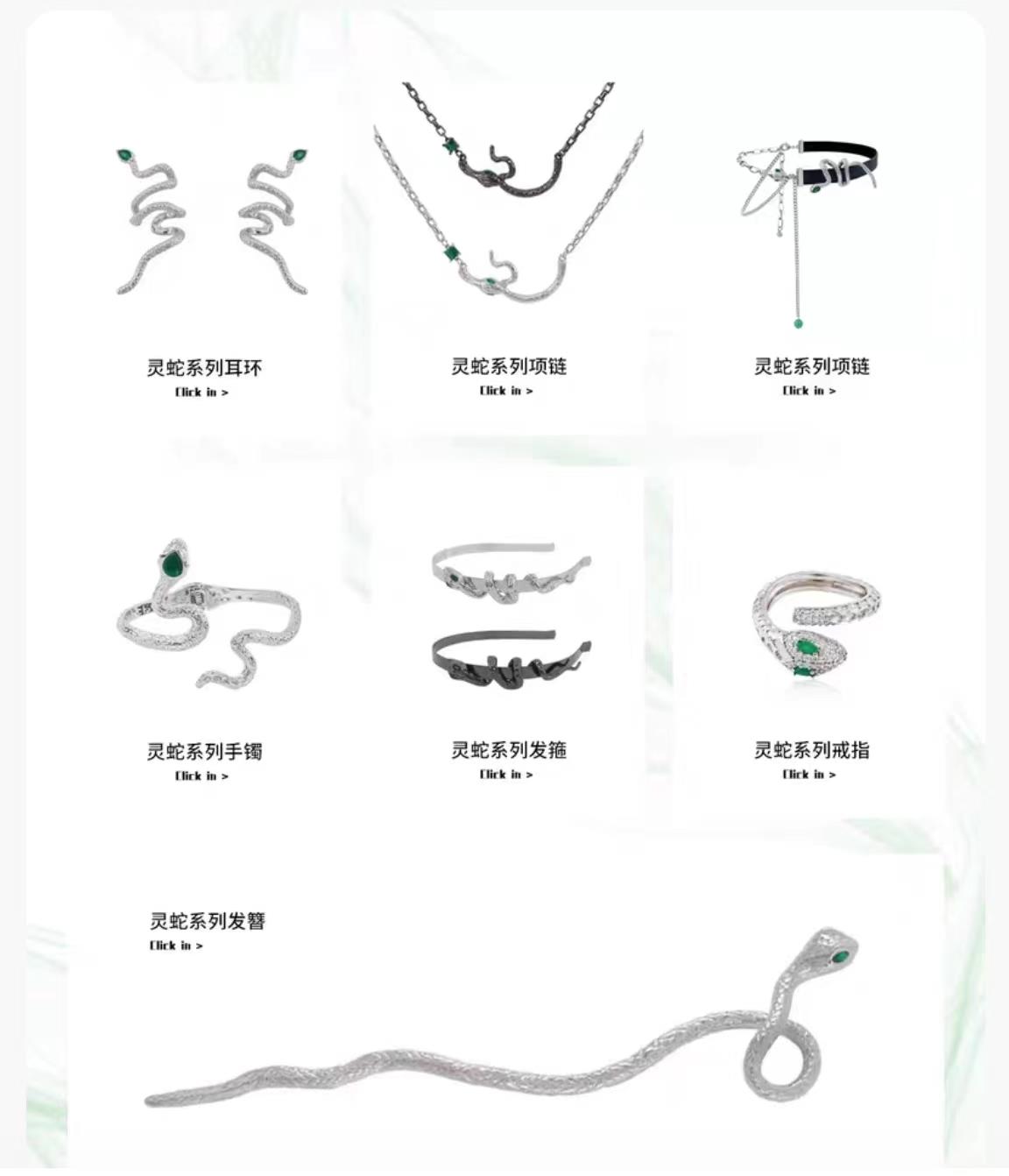 灵蛇系列:寓意趋吉辟邪的灵蛇的身体细长,蜿蜓爬行。作为留存在不同地区古老文明与历史中的文化符号,它依然具有神秘、强大、美丽、守护等多重意义。灵蛇起舞系列从艺术的角度诠释生活美学,显现充满灵性之美的设计与创意,它以妖娆魅惑的形态灿然起舞,寄予新一年以美好的祈愿。