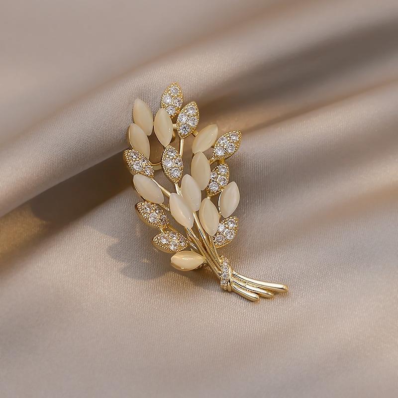 这款猫眼石碎钻麦穗胸针既精致又充满艺术气息,它能够完美地搭配各种场合和服饰,无论是日常穿着还是特殊场合,都能让您的造型更加出众和引人注目。