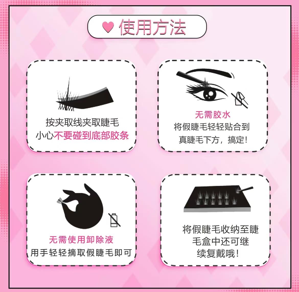 本产品为小火苗下睫毛,其应用自然并对放大双眼有十分显著的效果