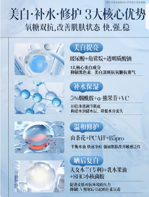 乳是乳液,质地比水稍浓稠。乳液能够在皮肤表面形成一层保护膜,防止水分流失,起到锁水保湿的功能。并且它还可以为肌肤补充一定的营养成分,像含有烟酰胺成分的乳液能够提亮肤色。水乳搭配使用,可以让肌肤保持水润状态。