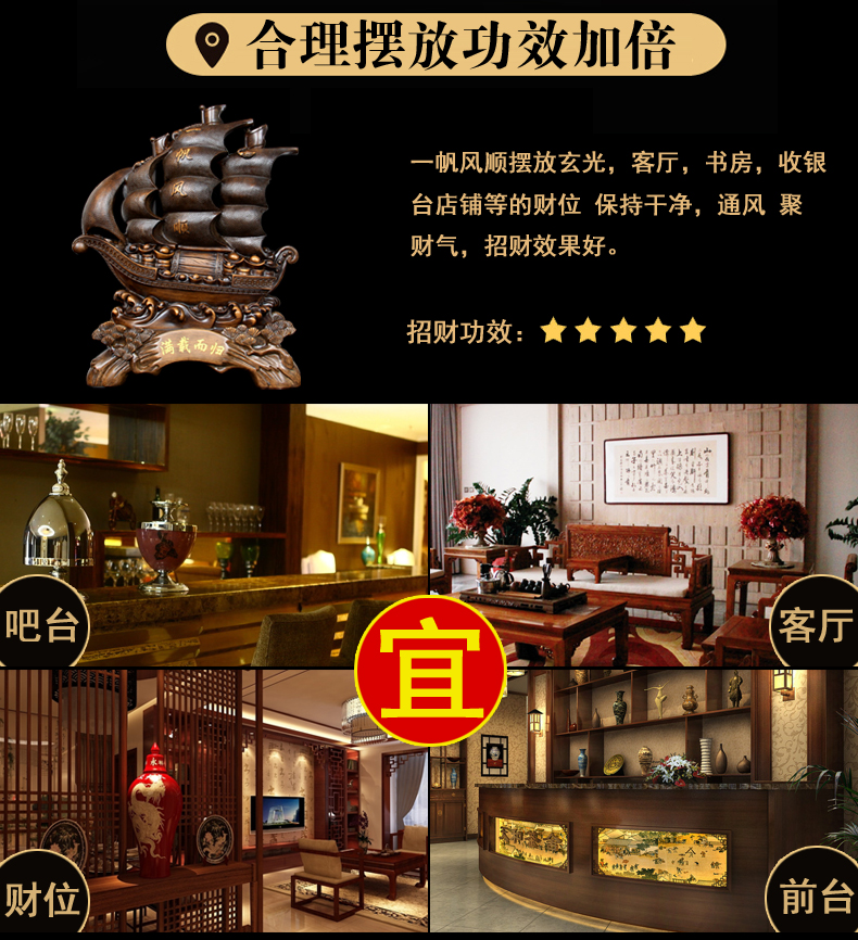 家居用品、厨卫清洁 > 装饰品 > 一帆风顺龙船帆船招财酒柜装饰摆件店铺公司开业礼品客厅工艺品