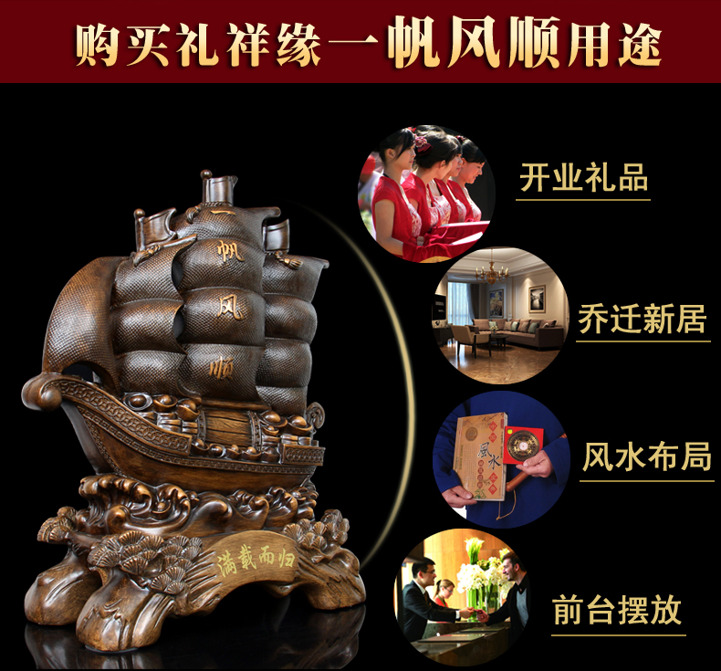 一帆风顺龙船帆船招财酒柜装饰摆件店铺公司开业礼品客厅工艺品