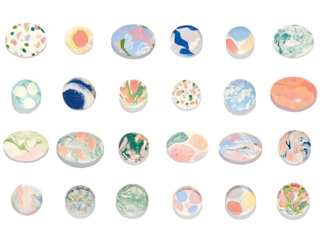 富有色彩的彩色陶瓷盘,冰淇淋般的配色非常适合夏天。可以当做水杯托盘,也可以用来装甜点和点心,适合装分量少的美食。