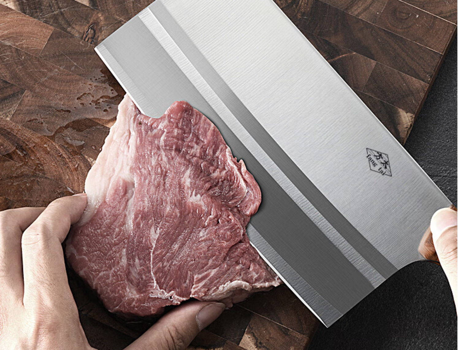 中式厨刀,光泽金属与原木材质的自然衔接,天然材料、柔和的色彩和简约的设计