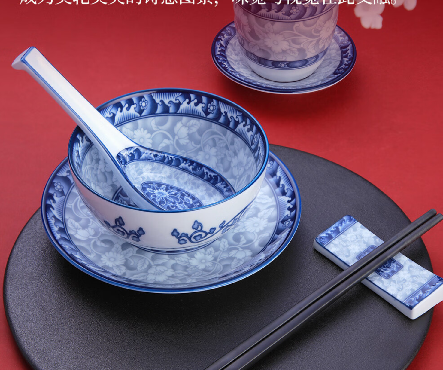 商品名称:参宝SAMBO中式复古青花瓷碗釉下彩陶瓷碗饭碗家用汤面碗汤碗高脚面碗 4英寸中式碗【小号汤碗/两个装】
