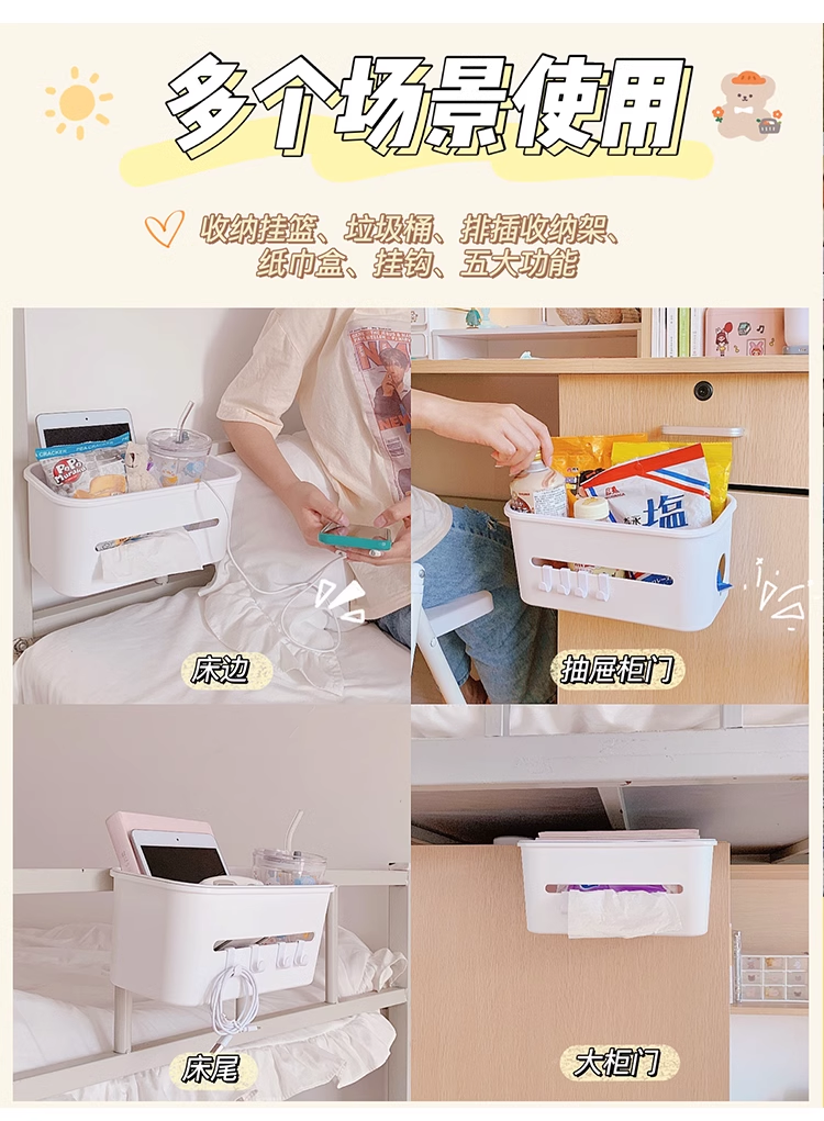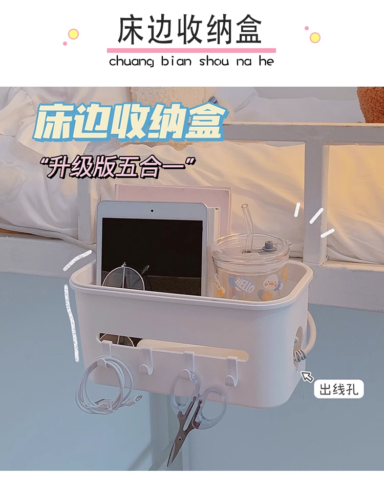 床边收纳盒,功能五合一,挂在床边收纳物品,适合懒人~