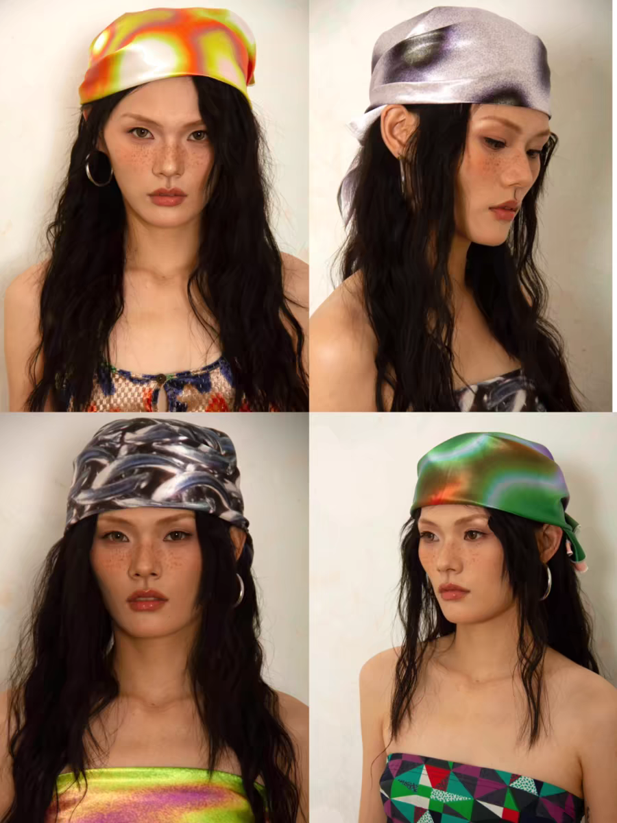 失控意象 原创设计复古辣妹头巾y2k多功能方巾头饰印花丝巾