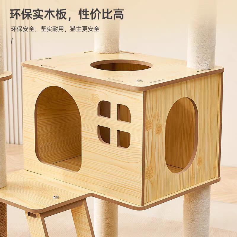 •材质优势:主框架采用实木板材,稳固承重力强(可同时承载2-3只成年猫咪),接触面为环保绒布/实木,无异味更安全;