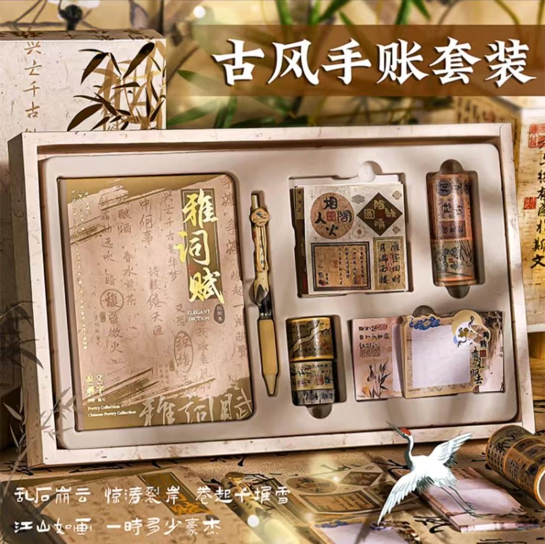 本产品采用轻奢烫金工艺,质感和色彩风格双重碰撞。内含新颖独特的3d立体设计,使本子更加精美。本产品含有全套手帐工具,20张PET贴纸,4卷和纸胶带,30张异型便利贴和长便签,纸张细腻顺滑