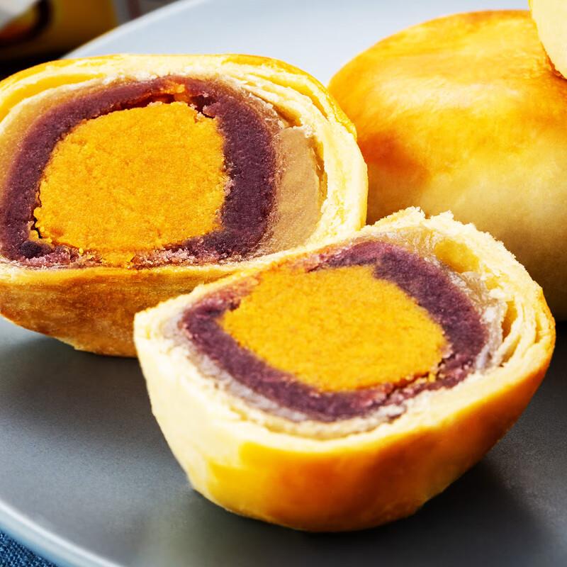 紫薯蛋黄酥是一种以紫薯和咸蛋黄为主要馅料的中式酥点,外皮酥脆、内馅香甜咸鲜