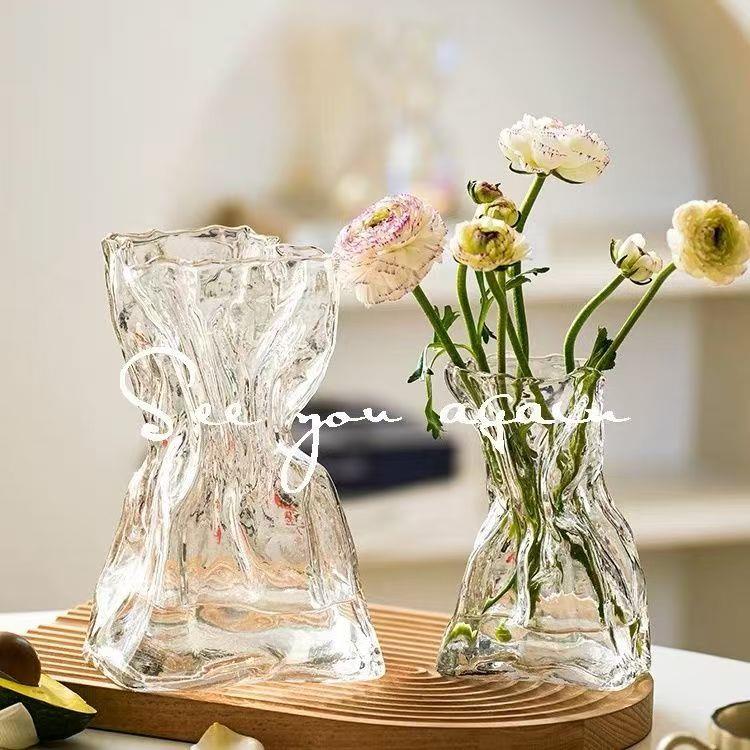高级感简约创意不规则民宿花瓶透明玻璃客厅桌面插花水养装饰摆件