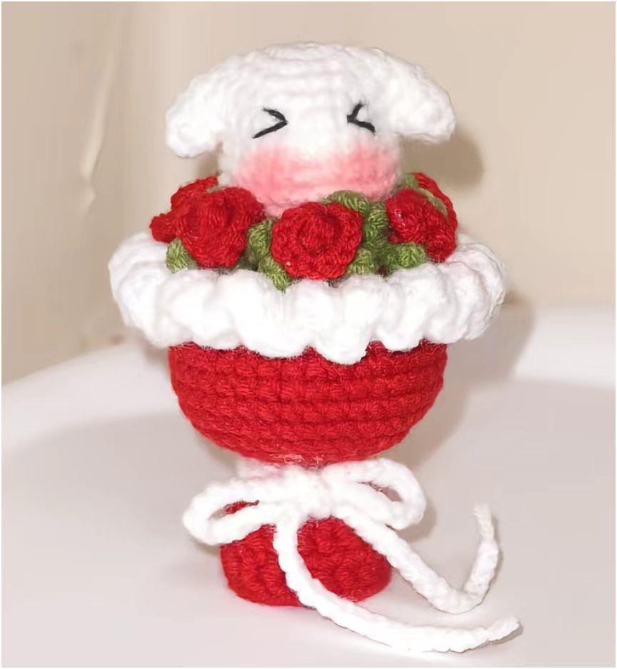 这是一款手工编织的 “玫瑰小羊” 玩偶,灵感源于易烊千玺的姓名标志性形象,每一只都由手工精心钩织而成,工艺细腻且充满温度。